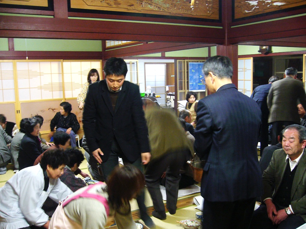 「御越年法要」はこの組織の一から六の順序でお勤まりになり、その後、一から三の組織で一幅の御影が、四から六の組織であと一幅の御影が御巡在になりますが、「鏡割りお講」は各組織のそれぞれ数カ所(概ね旧村落)で、営まれ、そのあと各集落への御巡在となる訳であります。