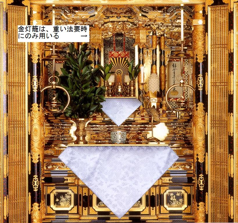 本尊がよく拝めるようにあかりとして灯す。写真にはありますが、重い法要時(ほうようじ)にのみ用いる。