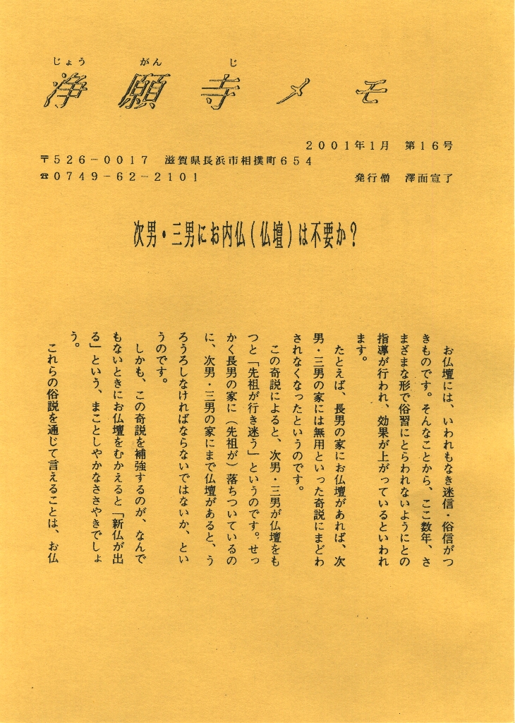 ●テーマ 次男 三男にお内仏(仏壇)は不要か?(16号)