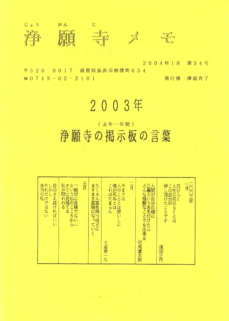 ●34号では、2003年1月〜12月までの浄願寺掲示板の言葉を掲載しました。