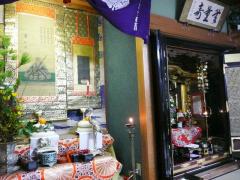 ↑お内仏(仏壇)の横、床の間に右から、南無阿弥陀仏、乗如上人、教如上人の御影