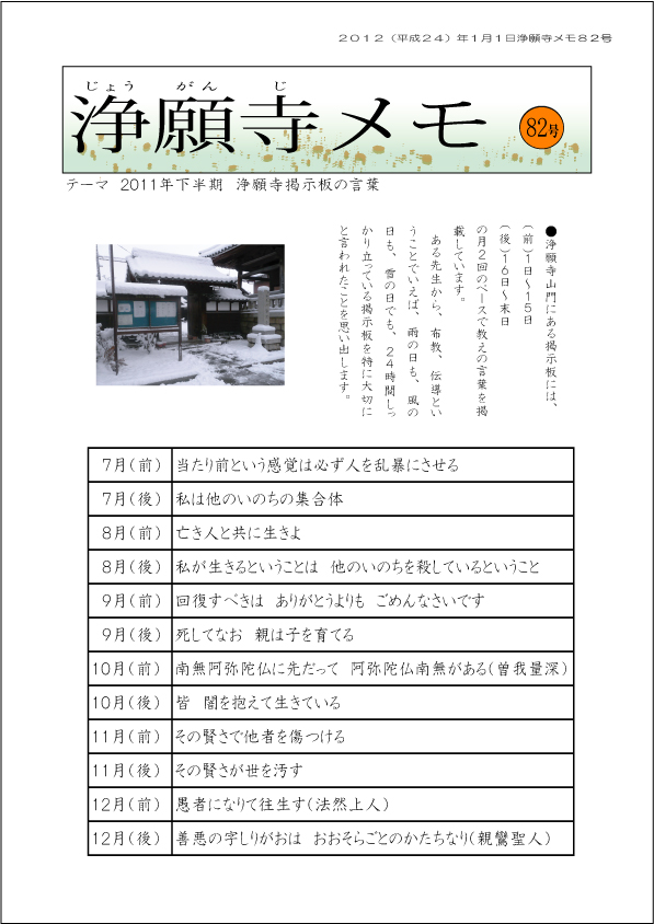 ●テーマ 2011年下半期 浄願寺掲示板の言葉(82号)