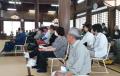 ↑お勤めの後、輪番挨拶(8:51撮影)