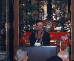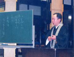 午前九時半からの満日中の後、住職の御俗姓の拝読、和田英昭さんの前座法話、黒田進先生の法話です。