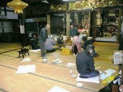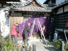 ↑11月30日(金)朝 山門 提灯設置 幕張り