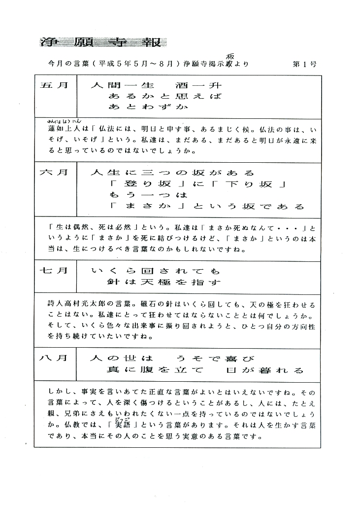 1993(平成5)年 浄願寺掲示板の言葉より