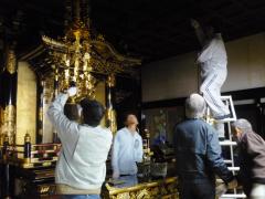 ↑11月5日(木)夕 山門 提灯設置 幕張り