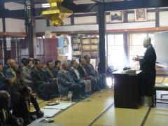 ↑法話 佐藤義成氏(湯次 満徳寺)