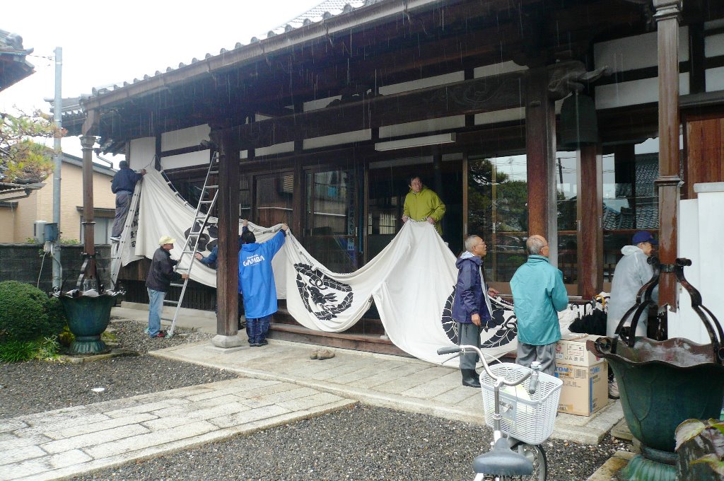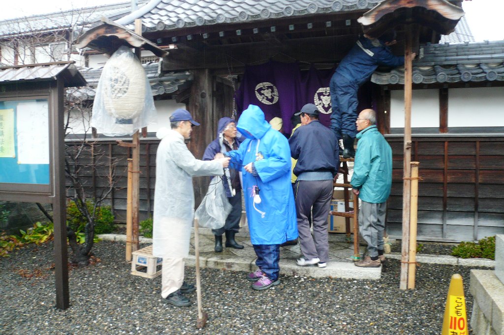 ↑11月15日(金)朝 山門 提灯設置 幕張り