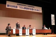 ▲午後の分科会は、「えん罪を防ぐために」というテーマのもと、講師、中北龍太郎さん(狭山事件再審請求弁護団事務局長)、パネラー、石川一雄さん(狭山事件再審請求人)、菅家利和さん(足利事件冤罪被害者)、桜井昌司さん(布川事件冤罪被害者)、司会、丸本千悟さん((公財)滋賀県人権センター)による第5分科会に参加しました。
