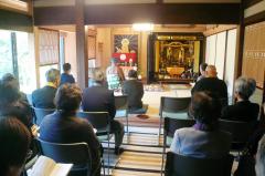 ↑地図17 長浜別院本堂にてお勤めの後、随行教導より法話です。(9:36撮影)