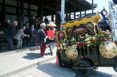 ↑お勤め、法話終了後、御影が運ばれます。(8:26撮影)