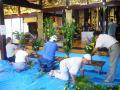 (写真は盆会法要前の仏花、打敷等の荘厳準備)
