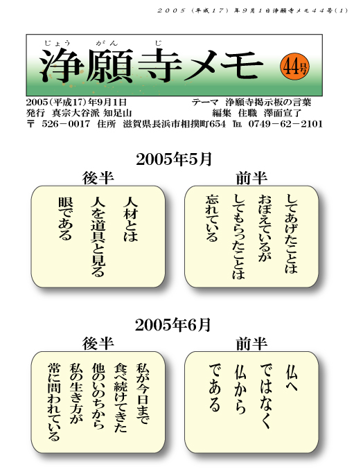 ●44号では、2005年5月〜8月までの浄願寺掲示板の言葉を掲載しました。