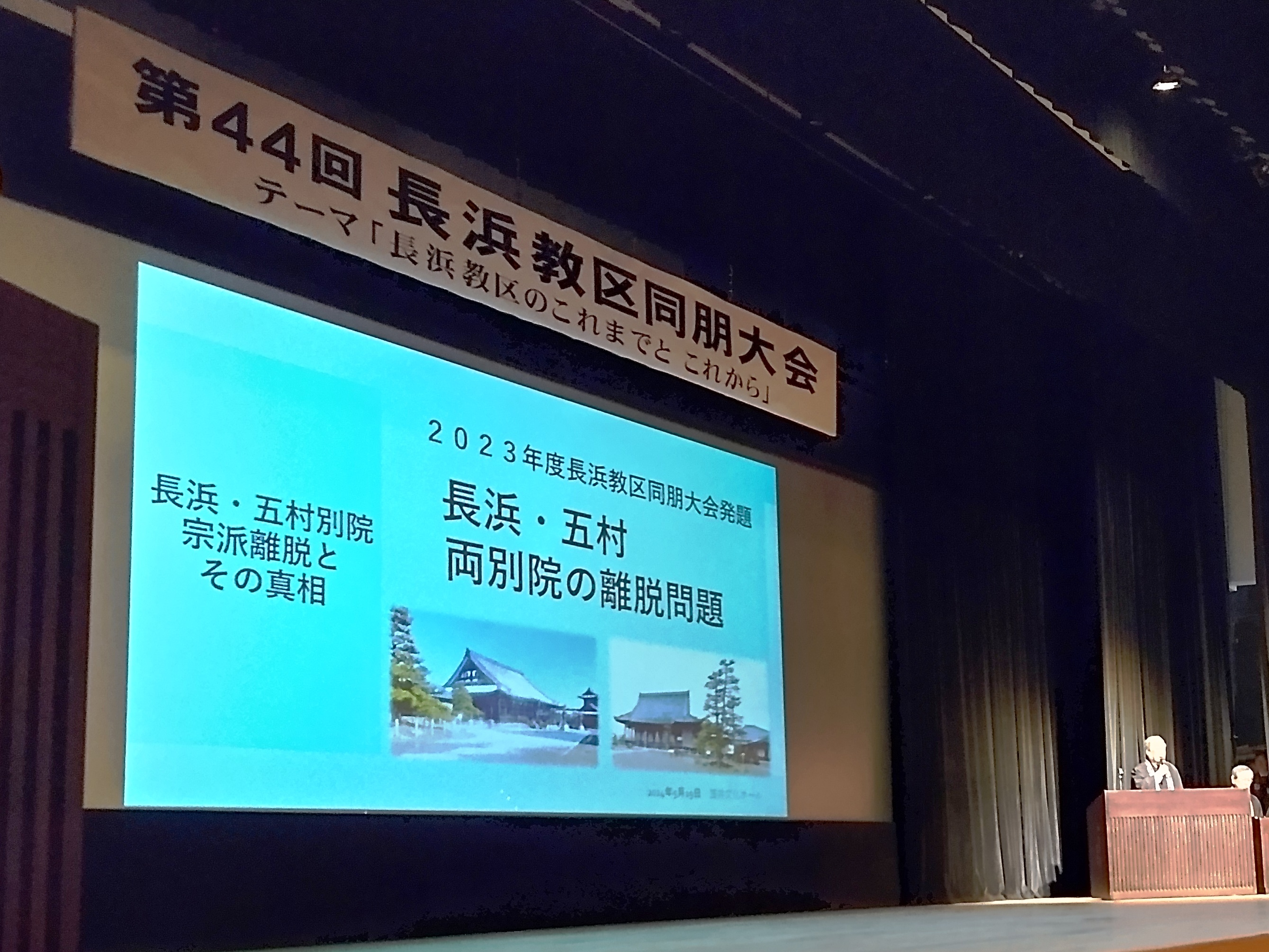 ▲5月19日(日)13:00〜16:00、浅井文化ホールに於いて、テーマ「長浜教区のこれまでとこれから」と題し、第44回長浜教区同朋大会が開催されました。浄願寺からは住職と門徒さん(1人)が参加しました。