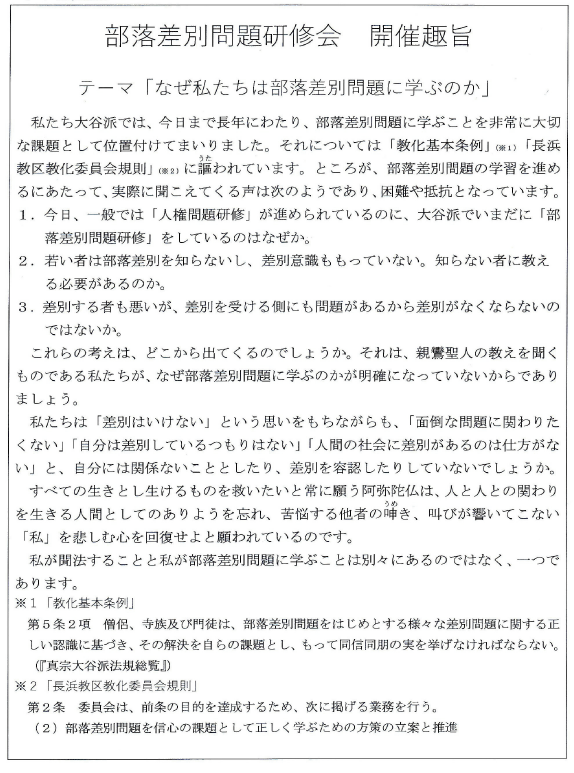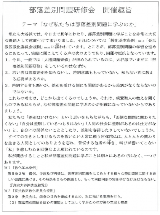資料2 長浜特区 部落差別問題研修会 開催趣旨