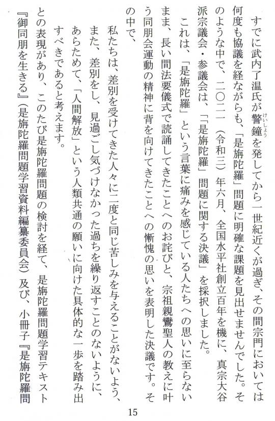 に触れられ、最後パワーポイントを用いて「是旃陀羅問題とは?」(2024年6月28日 長浜教区部落差別問題協議会発行)の講義をされ、その他経典に潜む諸差別の課題を示し結ばれました。