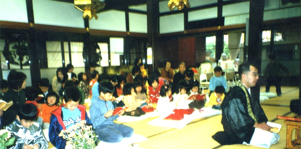 午前八時半からの子ども報恩講です。その後、満日中に子どもたち、一人ひとりからの献花です。