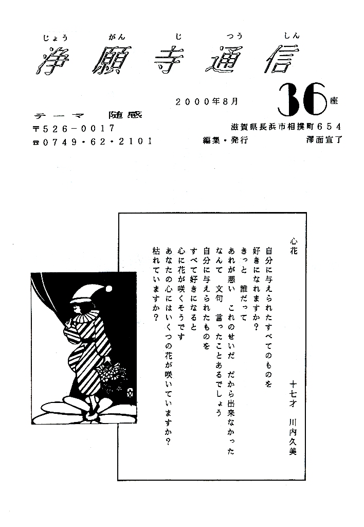 と…。おかげで、通信の発行の時期になると、この会話が私の脳裏から離れません。有難いことに、私のまわりにはきびしい諸仏が何人もいてくださいます。(笑)