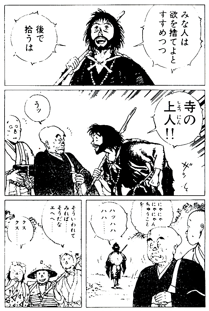これは坂口尚著の『あっかんべェ一休』という漫画の1ページです。とんちの一休さんに、2人の坊さんは、たじたじです。こんな私も「ほんまや」と手を叩いてしまいました。