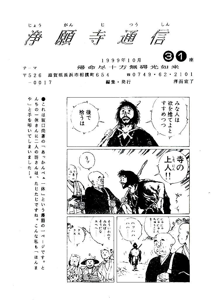 などと、自分は常に説く側にまわっていました。佛に近いところにいるのだと錯角する私は、一度でも、私の上に「十方衆生よ」という呼びかけを聞いたことがあっただろうか。そのことは、表紙の一休さんも僧侶を批判されます。
