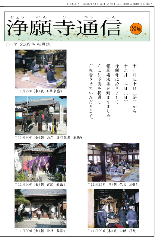 十一月三十日(金)から十二月二日(日)、浄願寺に於きまして報恩講法要が勤まりました。ここに写真を掲載しご報告させていただきます。(浄願寺通信に写真を加えています。)