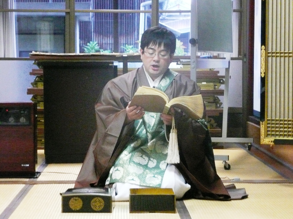 ↑御文拝読 筧承氏(山ノ前 蓮光寺)