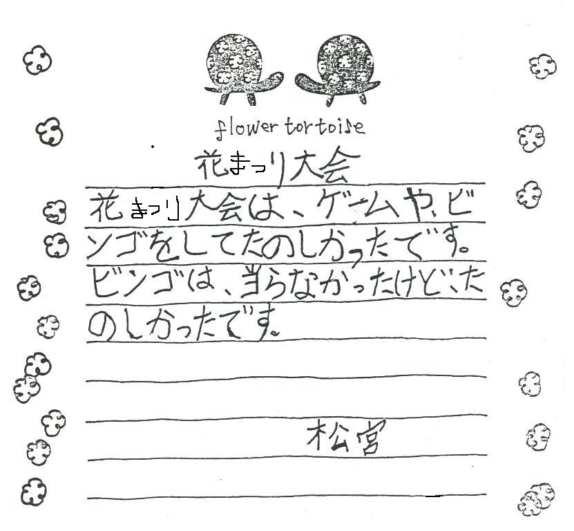 上の文章は、今年の5月3日、花まつり子ども大会(於長浜別院)へ、浄願寺日曜学校から参加した、松宮さんの感想文です。