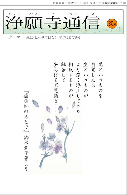 とあります。さすがに滑稽(コメディー)本作家だけあって、ユーモアながらも実に鋭い表現のように思います。先の御文とともに、「死は他人事ではなく、私のことである」との遺言です。