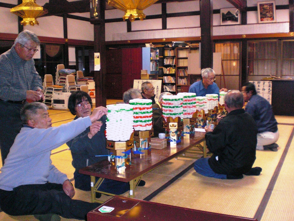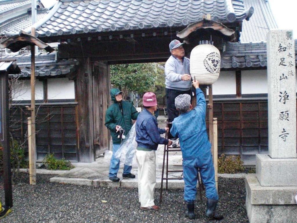 ↑12月5日(金)朝 山門 提灯設置 幕張り