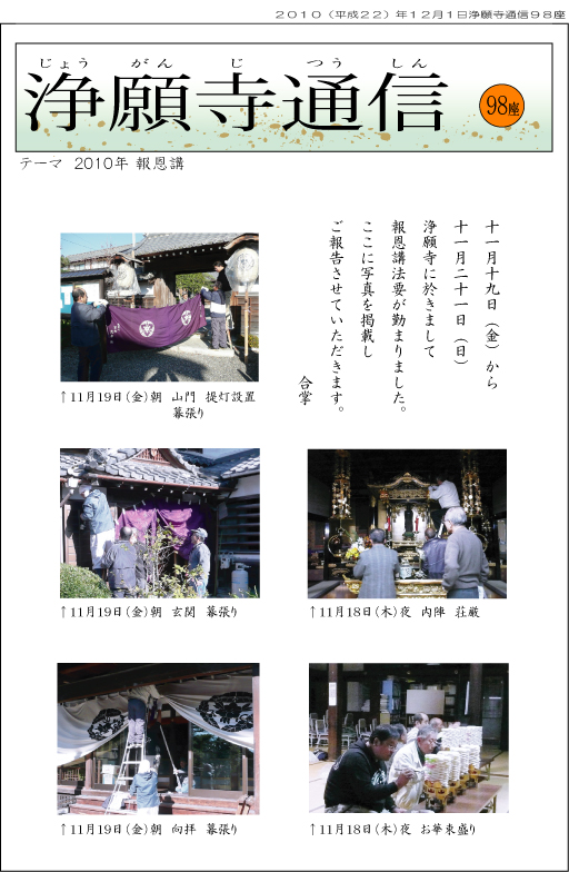 11月19日(金)から11月21日(日)、浄願寺に於きまして報恩講法要が勤まりました。ここに写真を掲載しご報告させていただきます。(浄願寺通信に写真を加えています。)