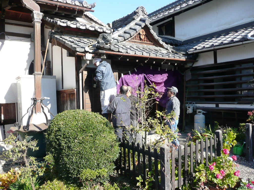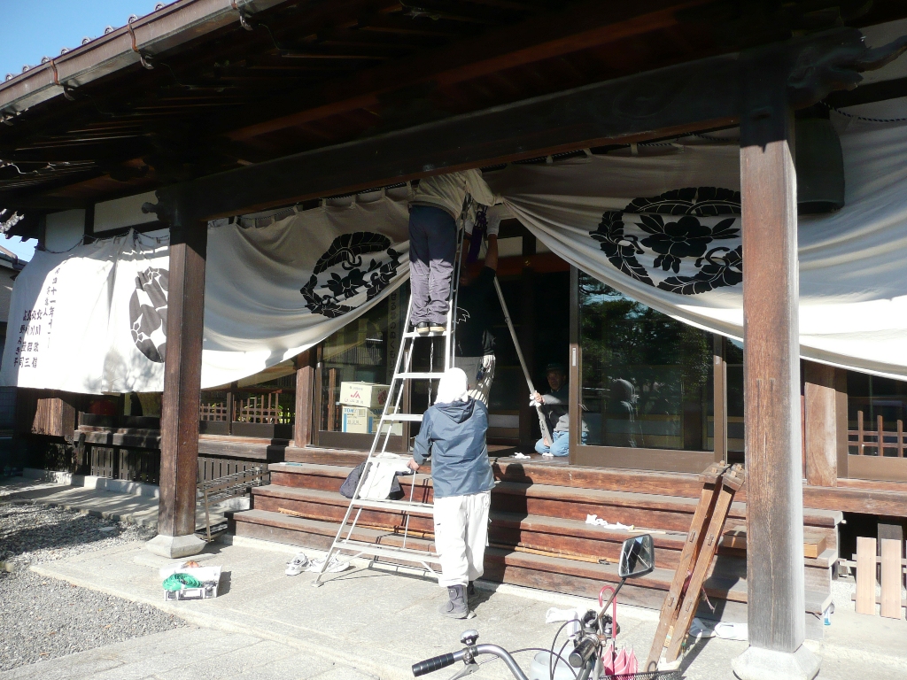 ↑11月19日(金)朝 山門 提灯設置 幕張り