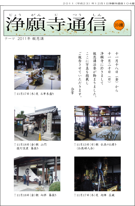 11月18日(金)から11月20日(日)、浄願寺に於きまして報恩講法要が勤まりました。ここに写真を掲載しご報告させていただきます。(浄願寺通信に写真を加えています。)合掌