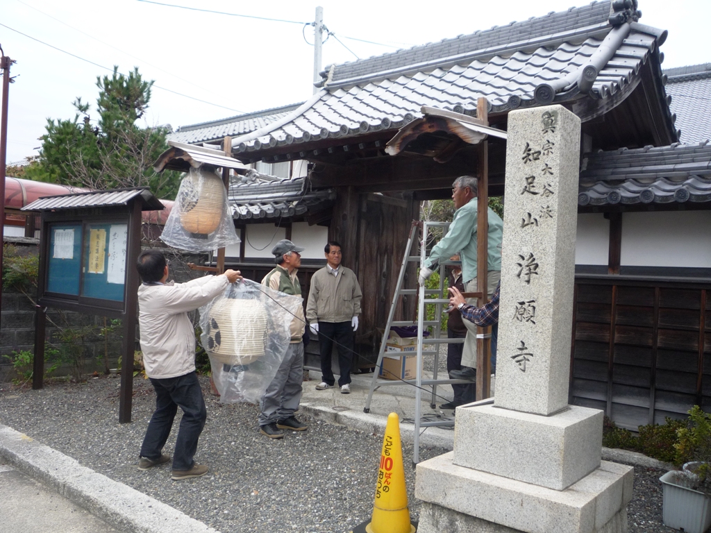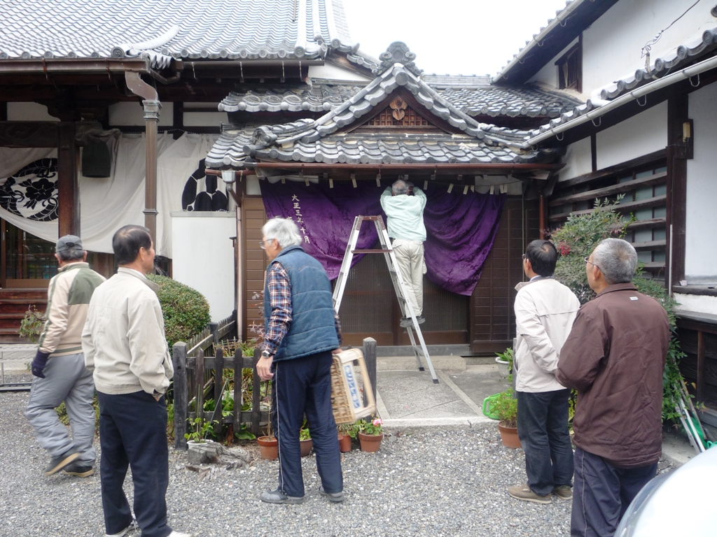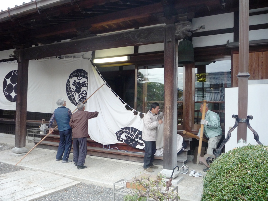 ↑11月18日(金)朝 山門 提灯設置 幕張り