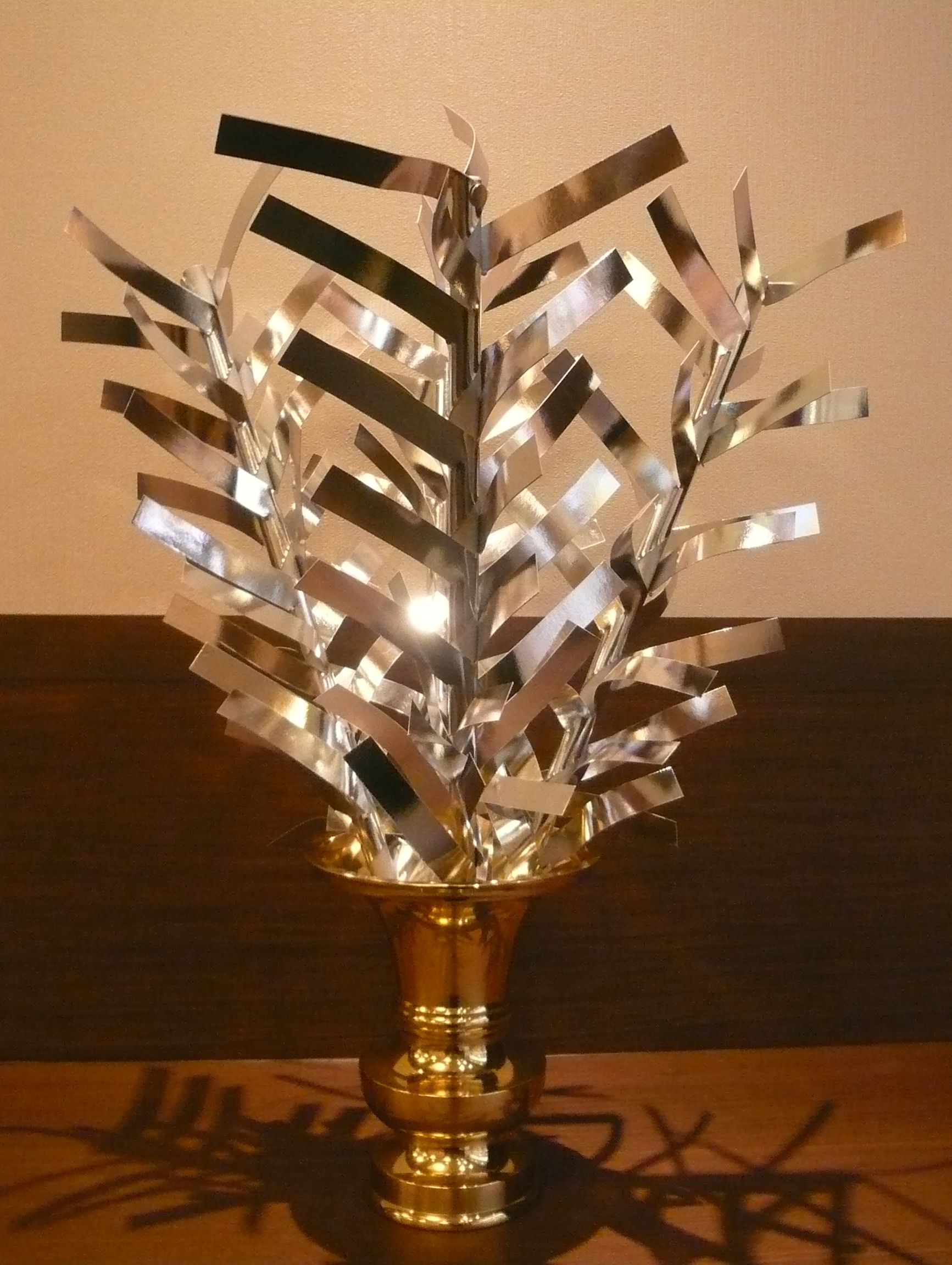 ■お釋迦様は一対四隅の沙羅双樹の下で亡くなられました。そしてその沙羅双樹のうち、片方は枯れ、もう片方はそれに反比例していよいよ活き活きと伸びていくのです。これを「一枯一栄」といい、実は、紙花はこれを形どっているのです。