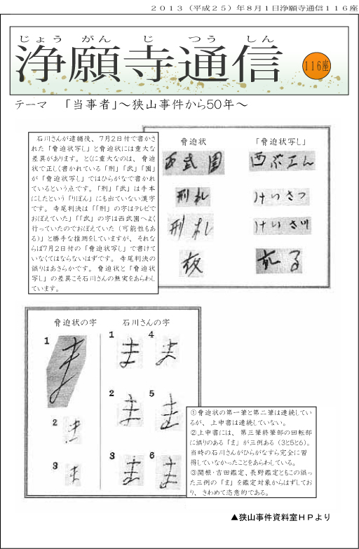 この事件の真相があらためて明らかにされようとしている。狭山事件が50年をむかえるいま、真宗大谷派としてもこの事件に学び、冤罪を起こさせない社会にむけた発信をする必要があろう。