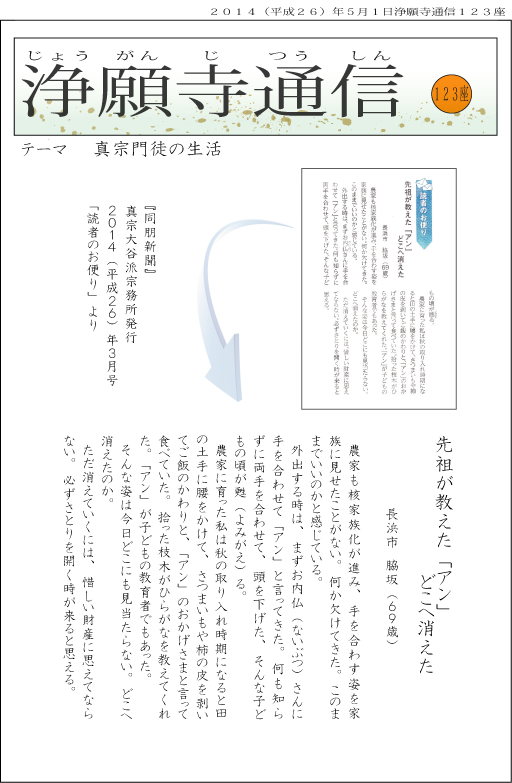 『同朋新聞』真宗大谷派宗務所発行2014(平成26)年3月号「読者のお便り」より