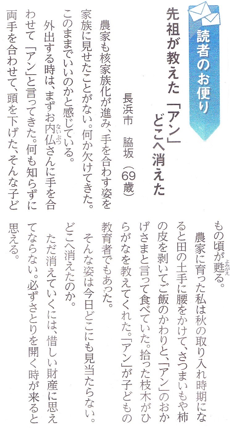 先祖が教えた「アン」どこへ消えた