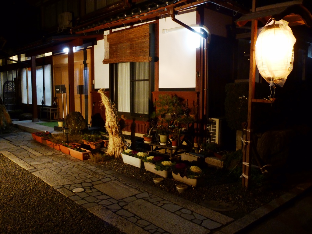 ↑お宿の藤居英樹様宅に提灯設置(夜)
