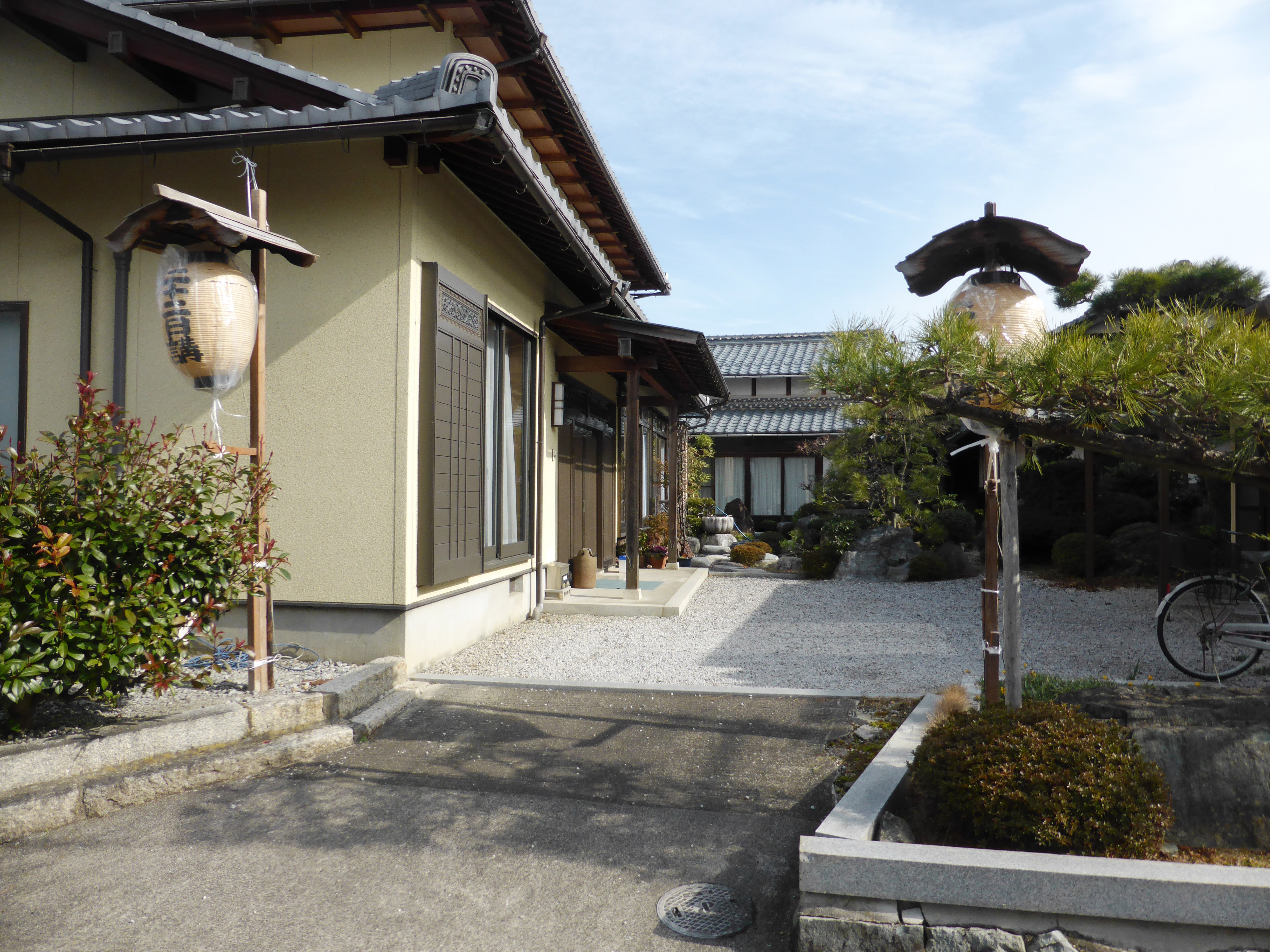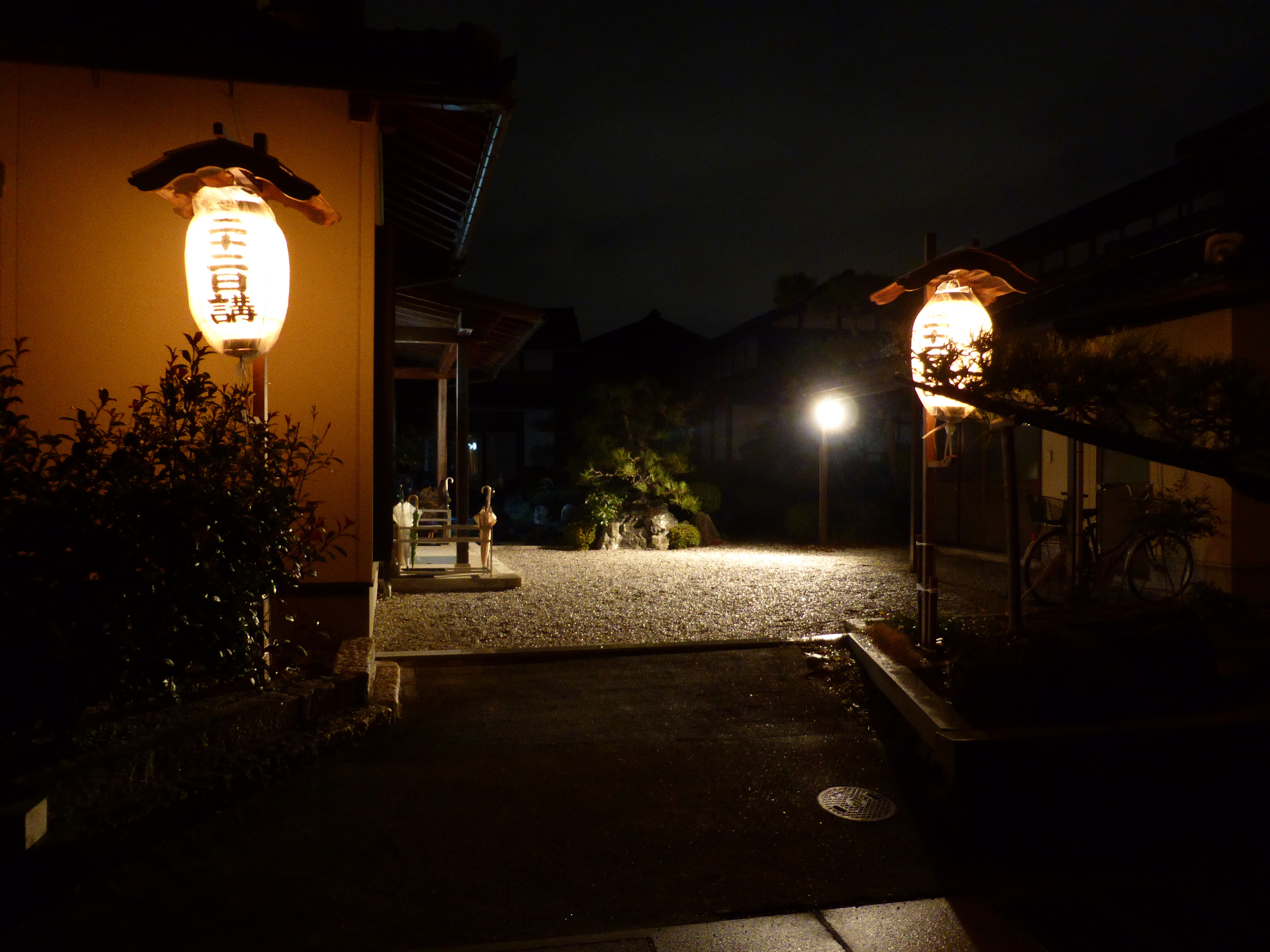 ↑お宿の藤田與四蔵様宅に提灯設置(夜)