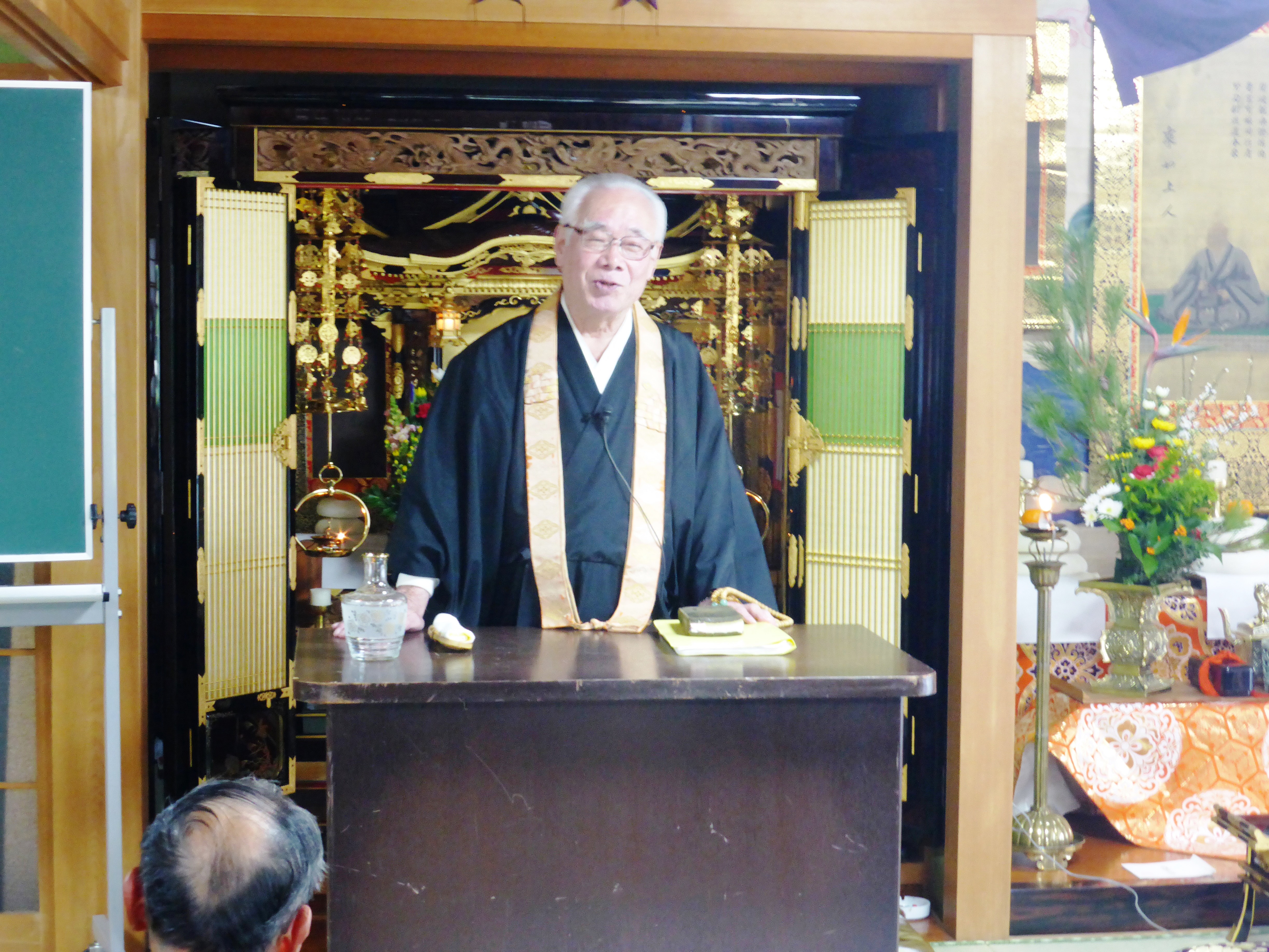 ↑法話 笠原俊海氏(八条 持専寺前住職)