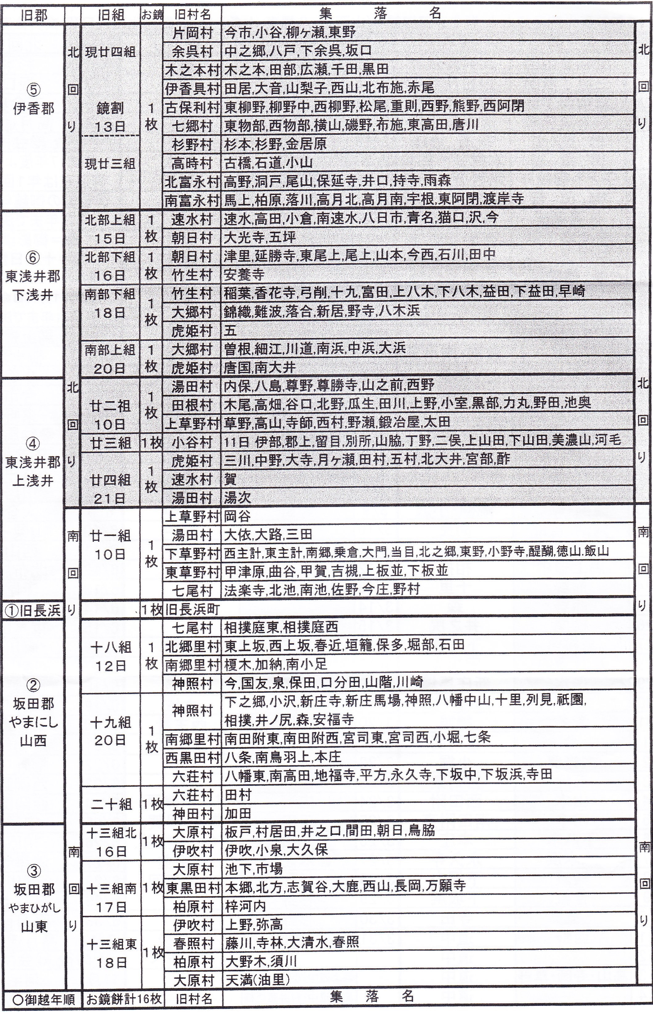 二十二日講の組織は湖北一市三郡を六つの地区に分けて構成されています。