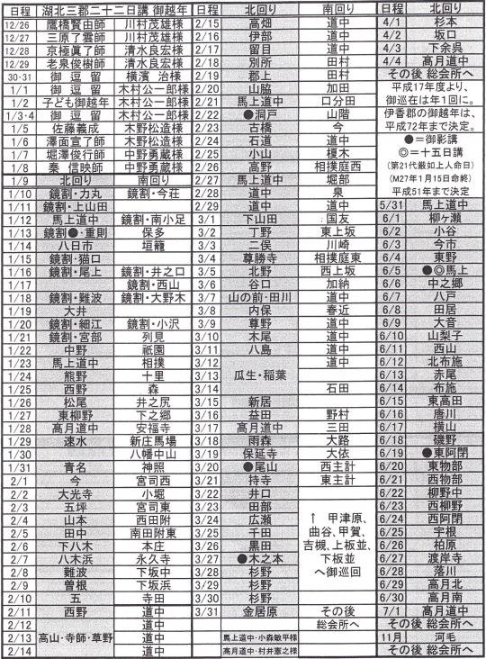 ※法要日程表は佐藤義成(湯次 満徳寺住職)さんから頂きました。