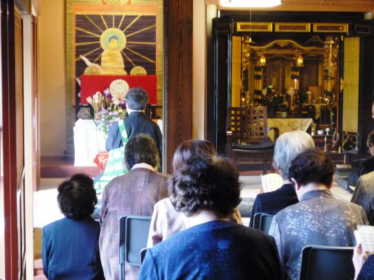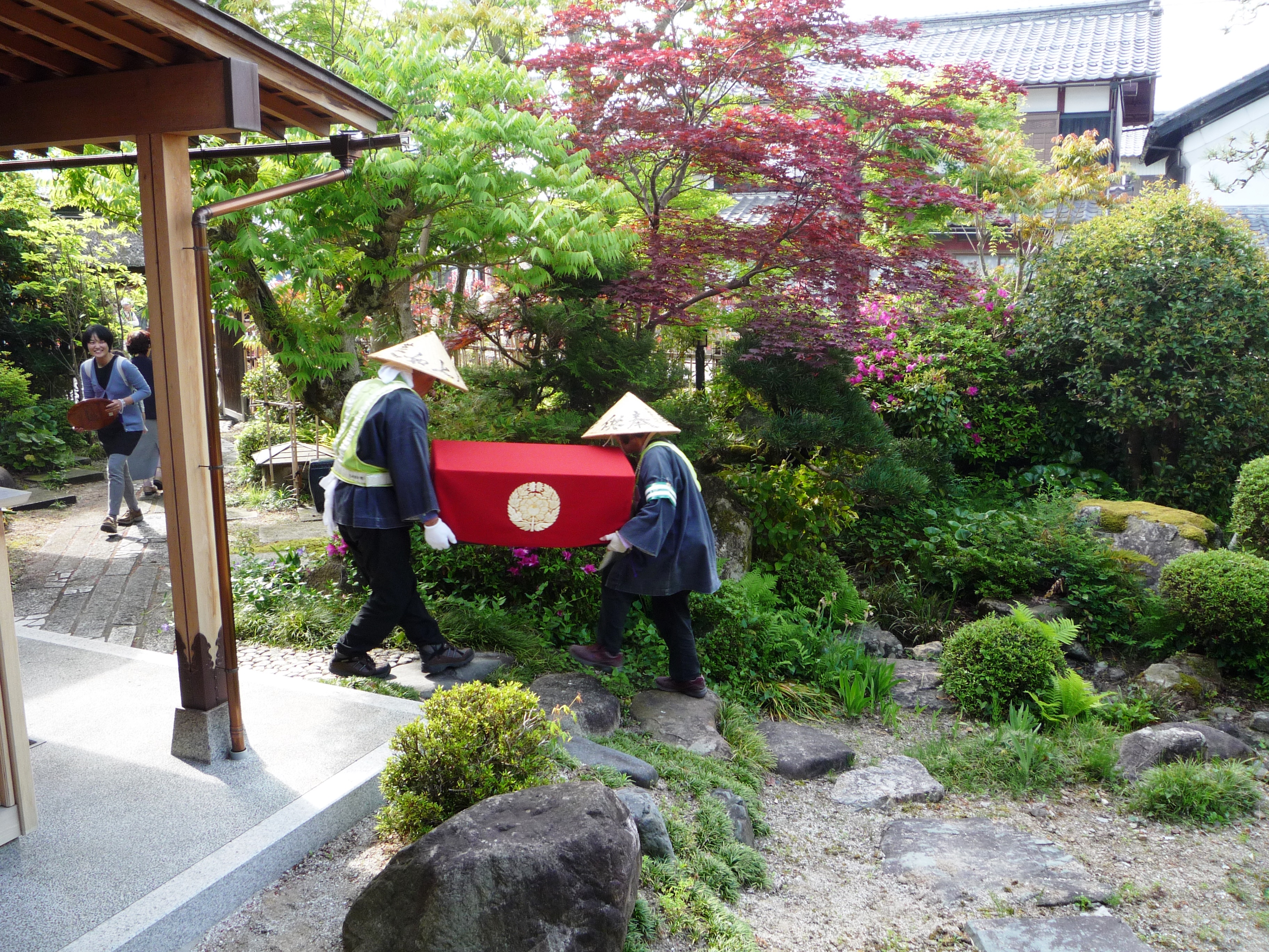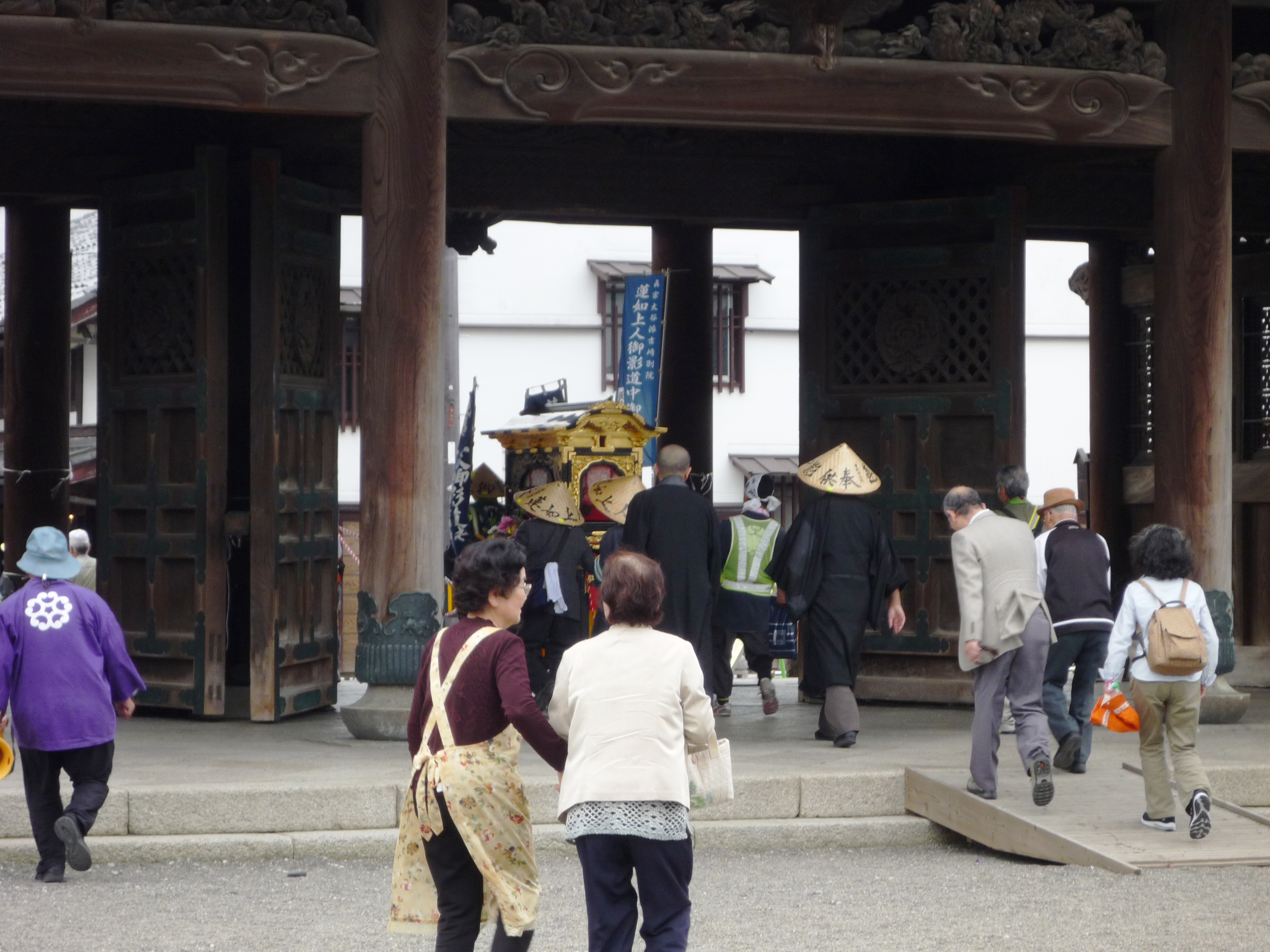 ↑お勤め、法話終了後、御影が運ばれます。(8:18撮影)