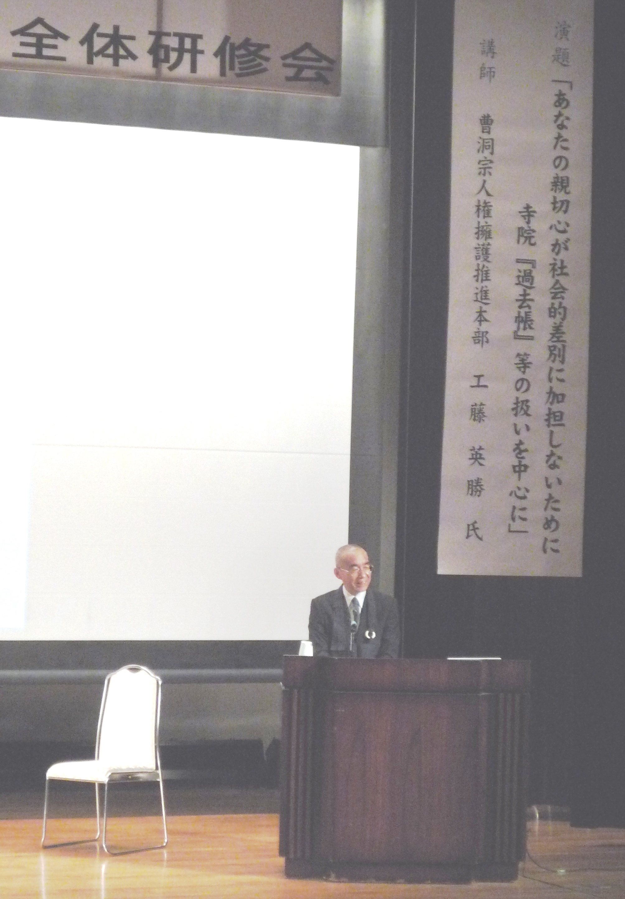 ■去る3月4日(金)於県立男女共同参画センター大ホール滋賀に於いて同宗連全体研修会が開催されました。 講師の工藤英勝さん(曹洞宗人権擁護推進本部員・足利工業大学・足利短期大学講師)が寺院『過去帳』等の扱いを中心にというテーマでお話されました。(写真右下)