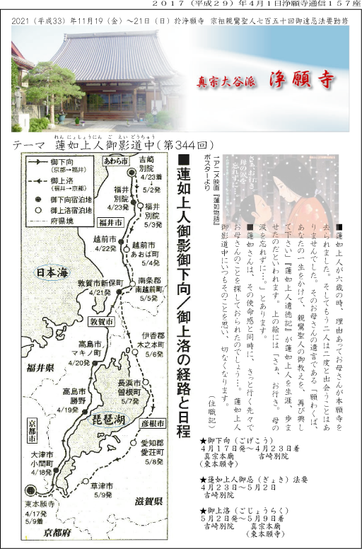 ※浄願寺通信に画像を何枚か追加しました。(蓮如上人御影道中は2016年5月7日に撮影したものです)