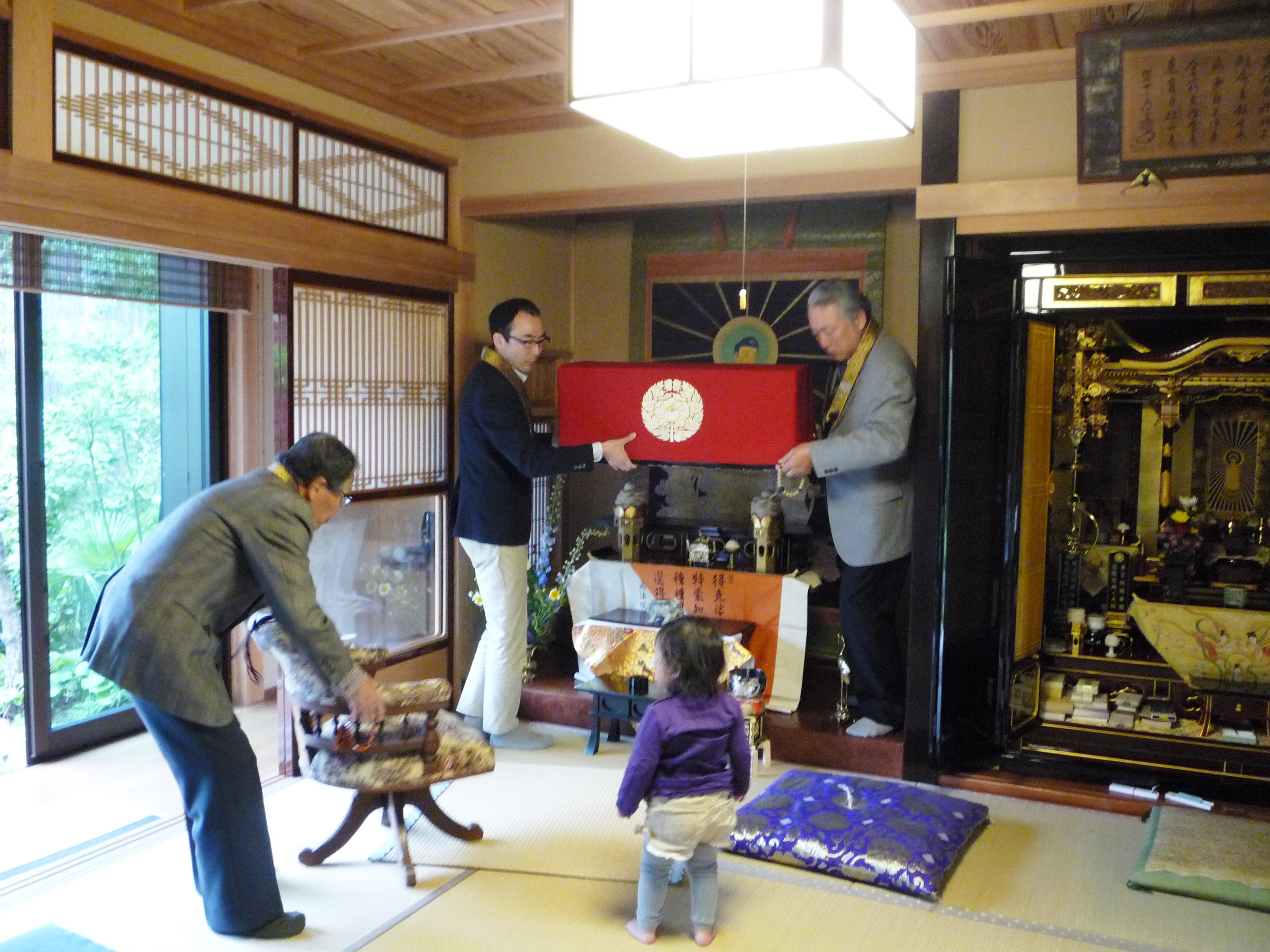 ↑中川(雅博)様宅にてお勤めです。(8:02撮影)