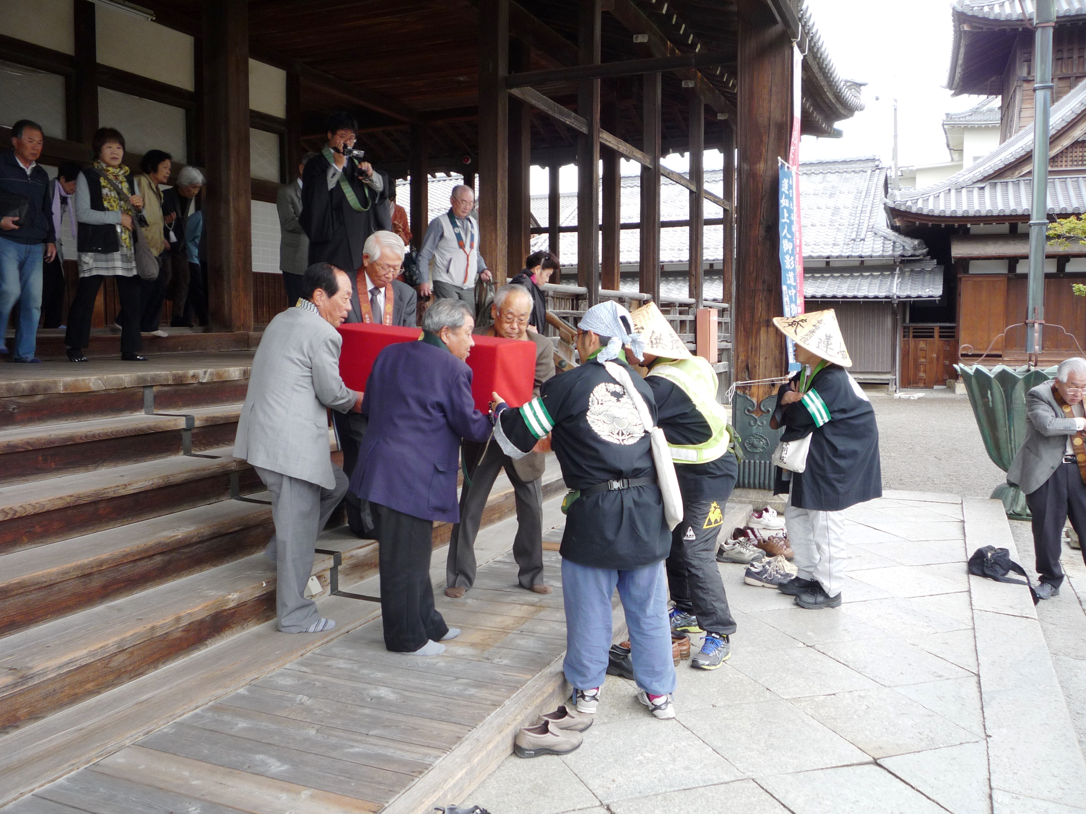 ▼供奉人とは、 門徒の希望者から選ばれた蓮如上人の御影にお供して歩く八人。その内の代表一人が宰領。御下向と御上洛では選定される供奉人は異なる 。