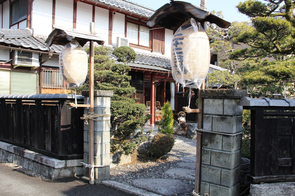 ↑お宿の藤田芳彦様宅に提灯設置