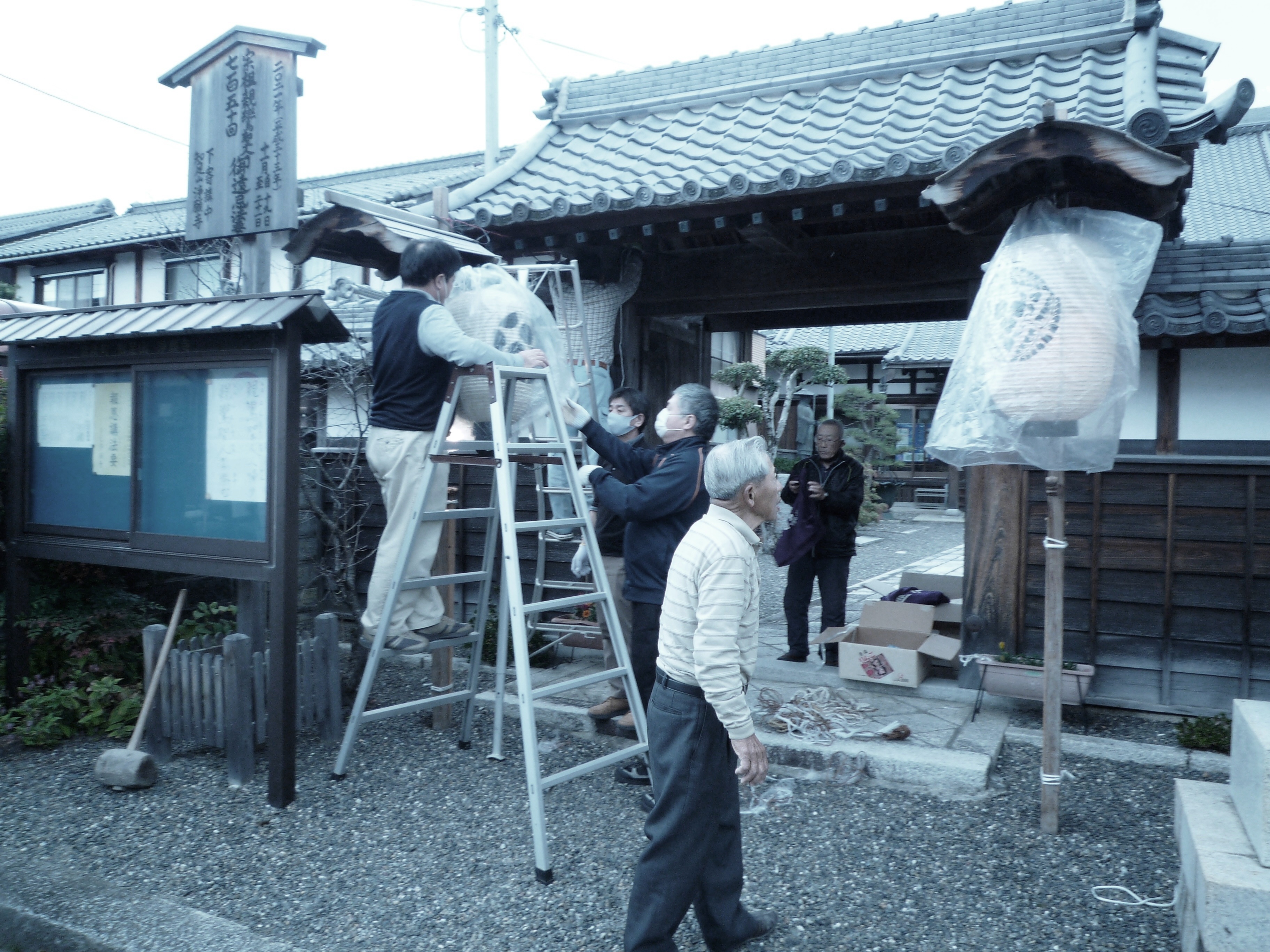 ↑11月20日(金)朝 山門 提灯設置 幕張り